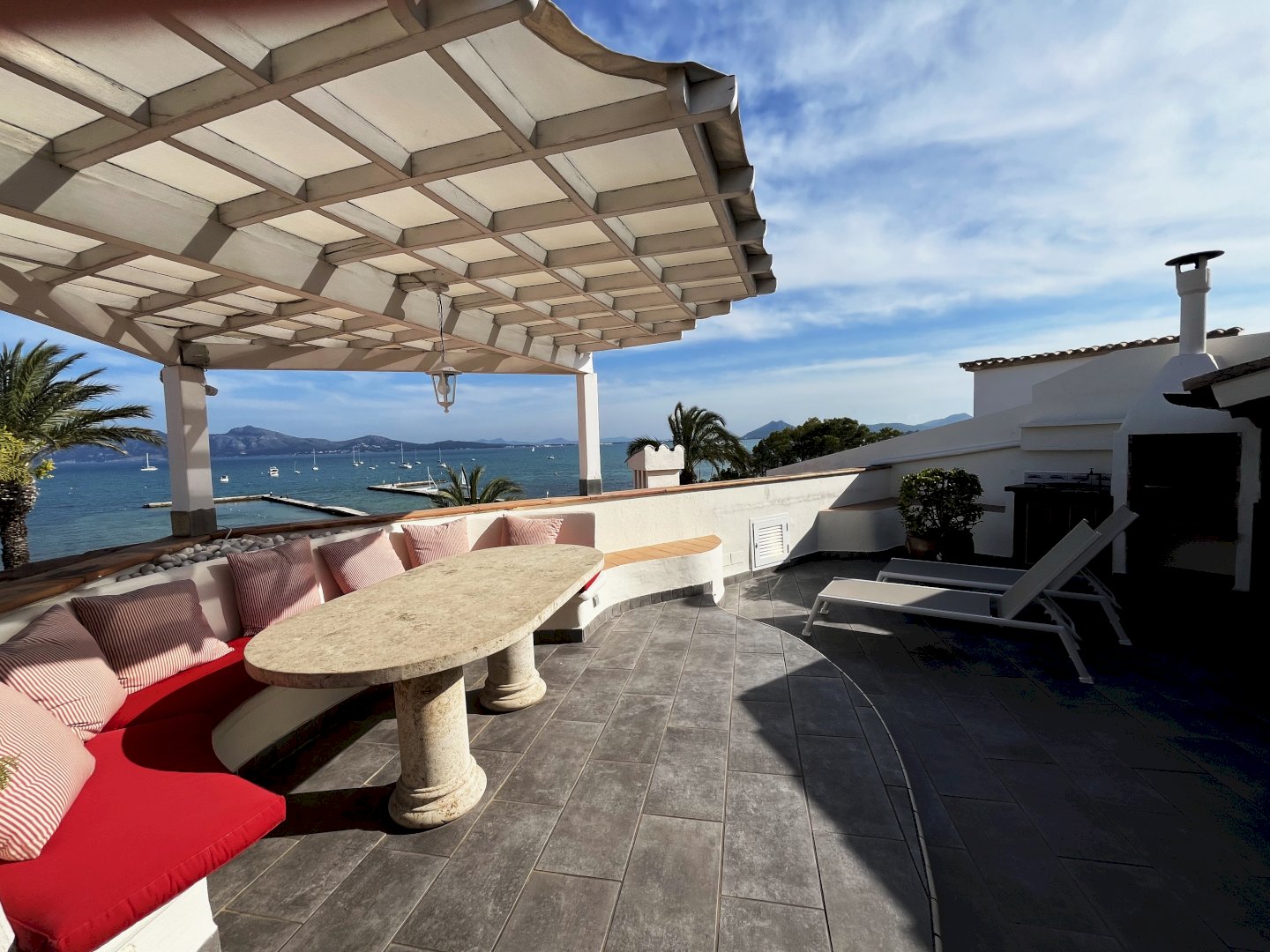 Un apartamento para una estancia especialmente relajada. Ideal para 2 personas. ¡La gran terraza acogedora con vistas impresionantes a la amplia Bahía de Pollensa es espectacular!