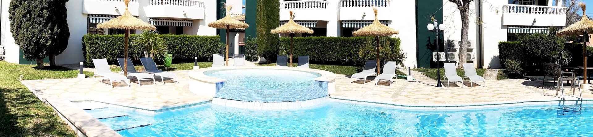 Gemeinschaftspool mit Kinderbereich, Außendusche, Sonnenliegen-und Schirme